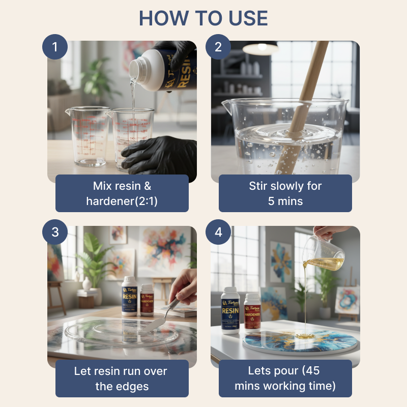 Designed for artists, woodworkers, and professionals, this 2:1 epoxy resin kit delivers superior clarity, strong bonding, and smooth self-leveling performance.